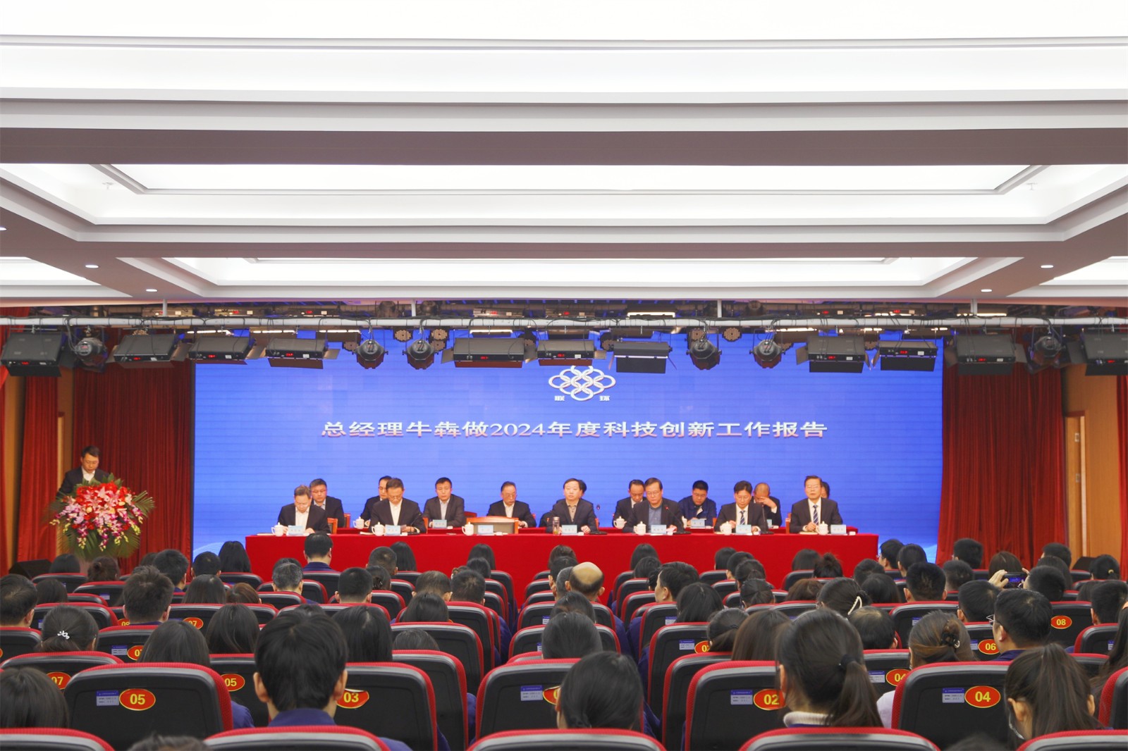 会议伊始,由公司总经理牛犇作《2024年度科技创新工作报告》。他从公司研发产品注册申报、新品立项、项目推进、技术革新等多个方面向大家汇报了2024年科技创新工作取得的进展和突破,并详细报告了2025年公司科技创新工作的蓝图。接着,会议做了《2024年度“揭榜挂帅”总结及2025年工作规划》。 随后,副董事长涂斌宣读了《关于表彰2024年度科技创新先进集体的决定》,党委副书记谭志刚宣读了《关于表彰2024年度研发先进个人的决定》,大会对2个研发贡献奖、7个优秀项目团队奖、1个科技攻关奖、4个技术革新奖、10名综合考评先进个人、6名最佳奉献员工、5名最佳新人和2个研发立项奖进行了表彰。 接着,研发贡献奖代表王道生、优秀项目团队奖代表吴鸣、综合考评先进个人代表范子祺、最佳新人奖代表张凯华依次上台作交流发言。